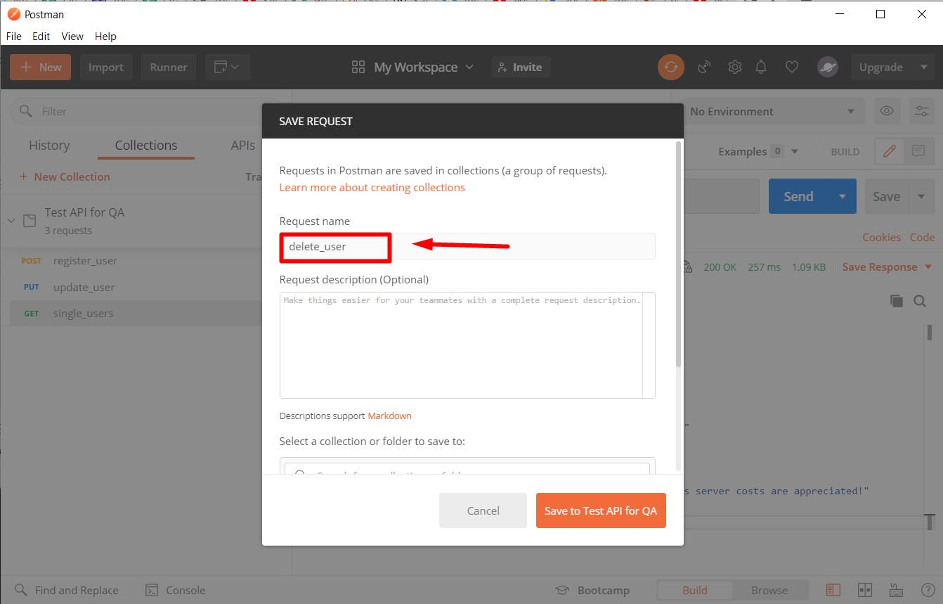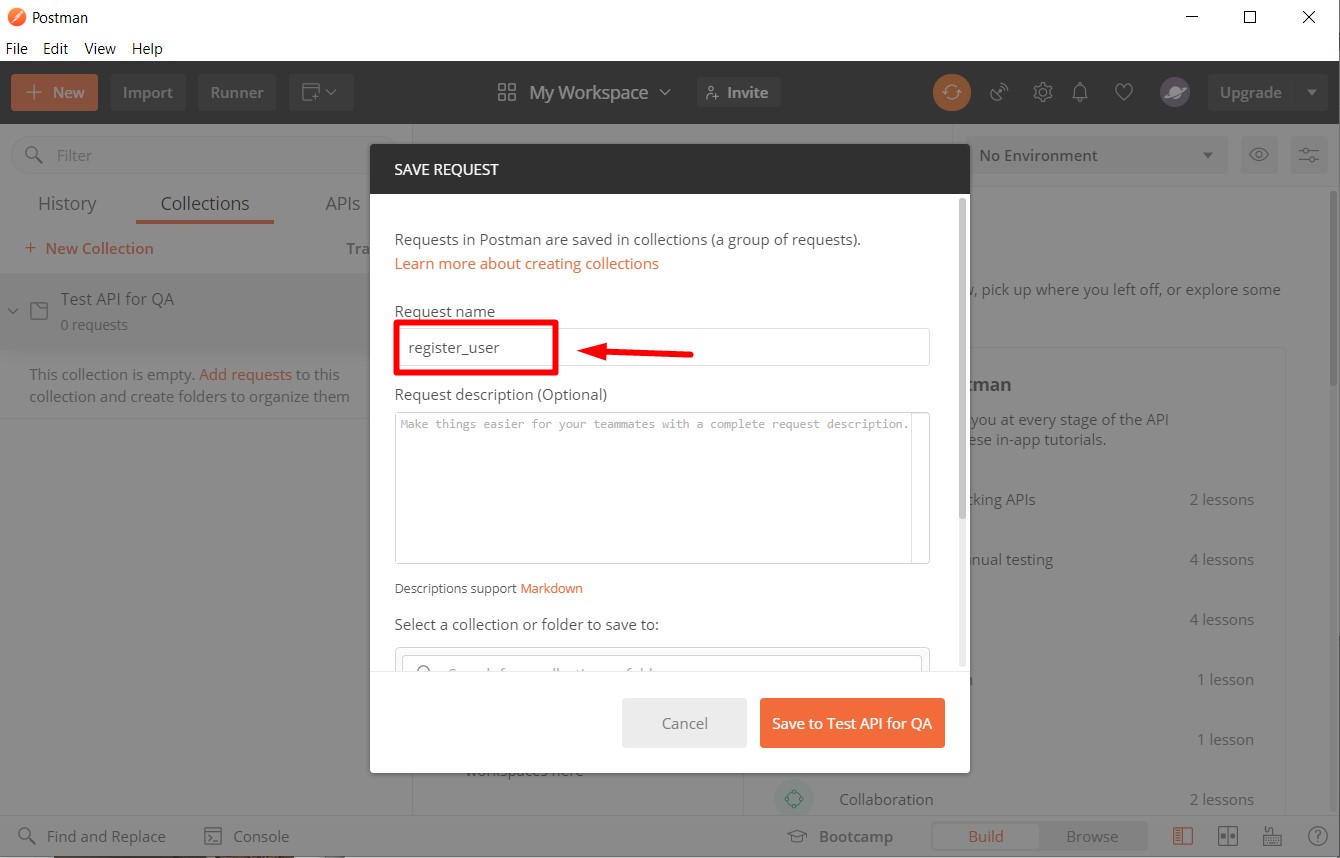 - Рассмотрим регистрацию пользователя, поэтому указываем соответствующее название и нажимаем на Save to [Collections name].