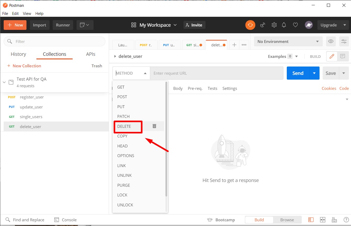 - Выполним запрос на получение данных о созданном пользователе, выбираем GET.