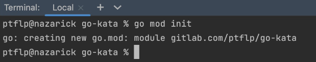 6. Инициализируем модули go mod, в терминале Goland введем команду: