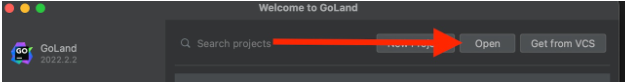 4. Откроем наш репозиторий в Goland. Важно: перед этим надо закрыть все открытые проекты.