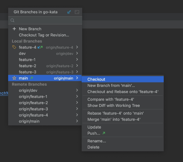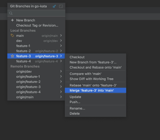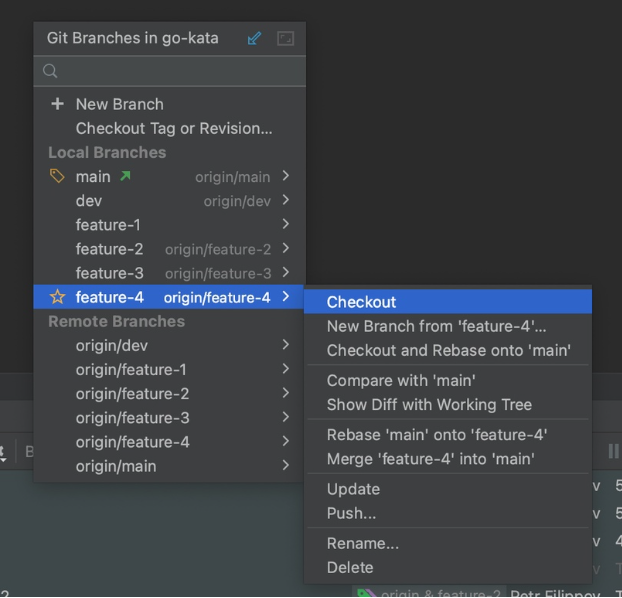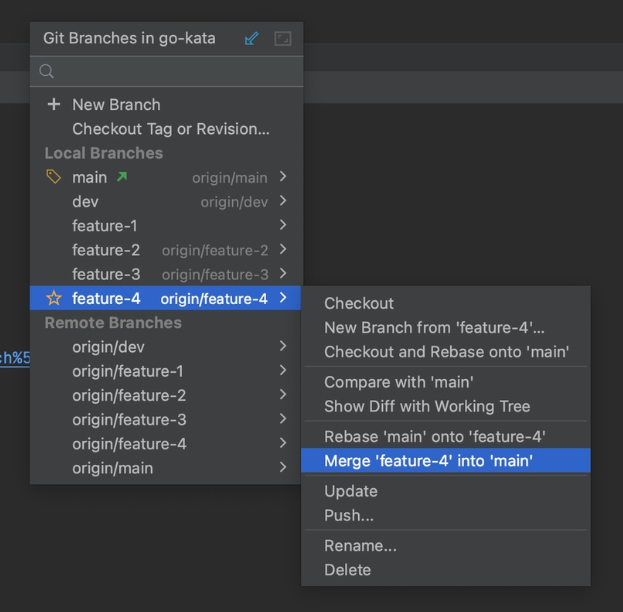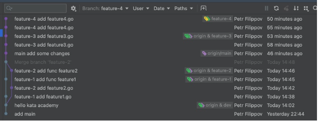 1. Повторим операции для ветки feature-4.