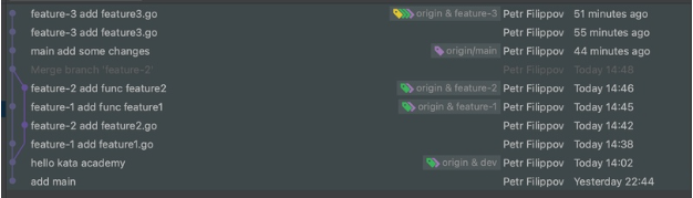 2. Выполним merge с ветки feature-3.