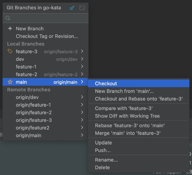 1. Убедимся в том, что мы находимся в ветке main.