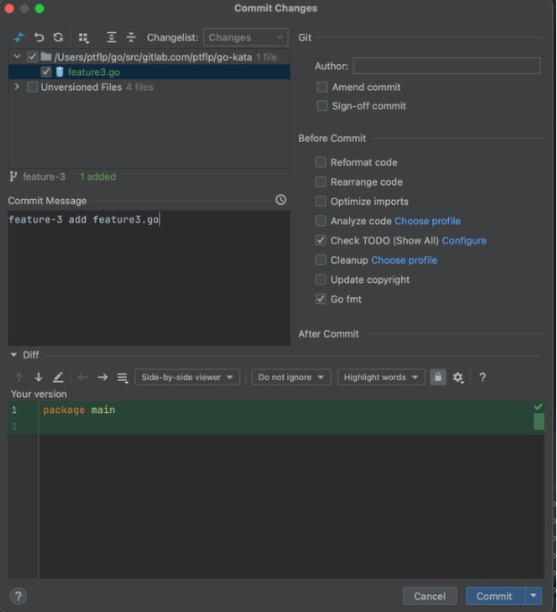 2. Создадим ветку feature-3 для дальнейшего rebase с ветки main, проделаем аналогичные изменения.