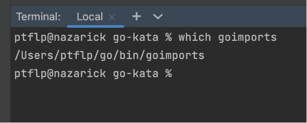 2. При наличии программа должна показать путь.Если goimports отсутствует, устанавливаем по инструкции.
