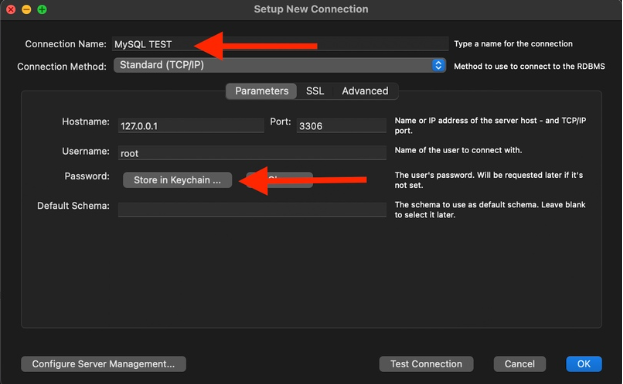 2. Далее прописываем название для подключения (любое) и пароль, указанный выше в контейнере docker.