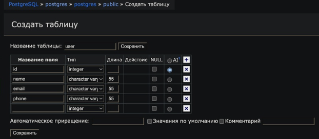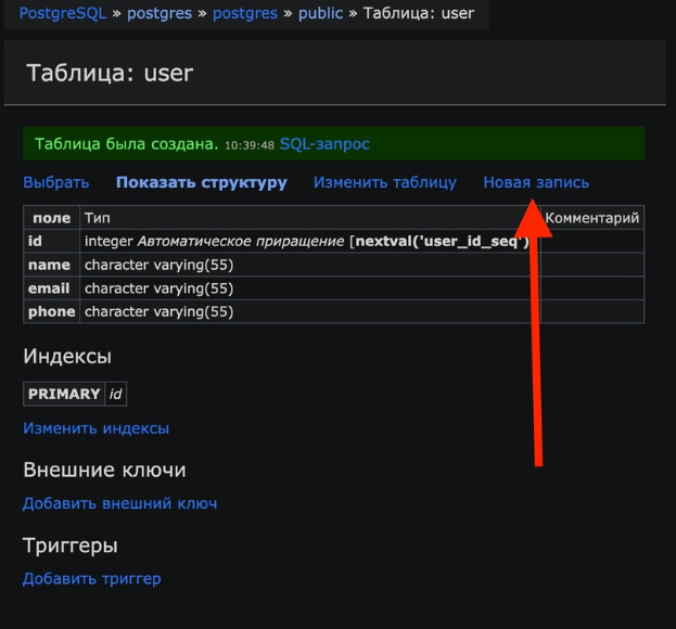 4. Создадим аналогичную таблицу пользователей, как в mysql.