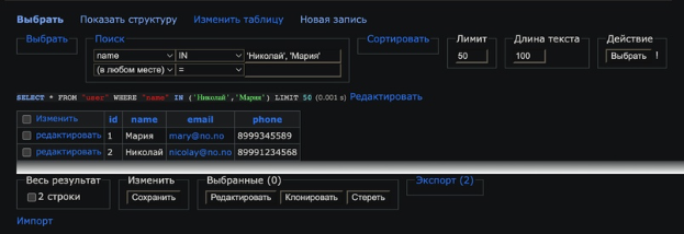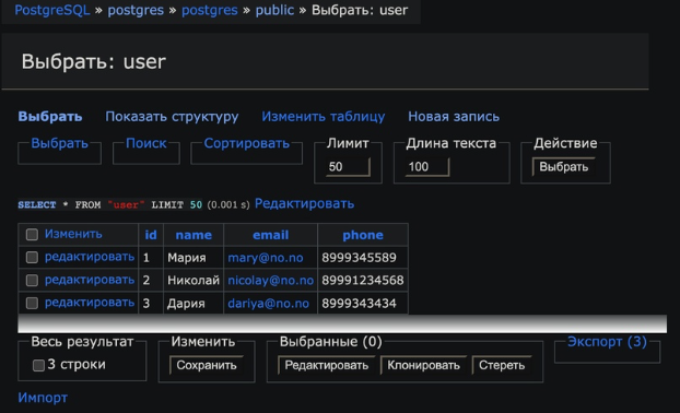 - выполнять SQL-запросы в Adminer и MySQL Workbench.
