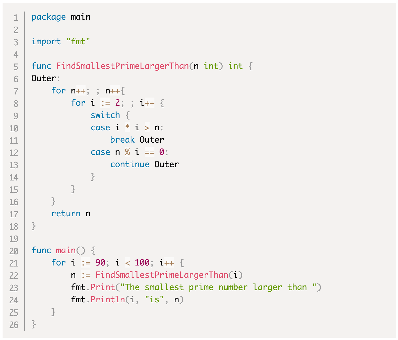 Если continue оператор содержит метку, она должна быть объявлена непосредственно перед блоком потока управления циклом, который содержит continue оператор. Мы можем рассматривать имя метки как имя блока потока управления циклом. Оператор continue завершит текущий шаг блока потока управления циклом заранее, даже если блок потока управления циклом не является самым внутренним блоком потока управления циклом, содержащим continue оператор.