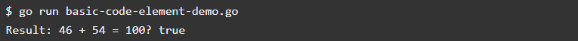 Сохрани приведенный выше исходный код в файл с именем basic-code-element-demo.go и запусти эту программу: