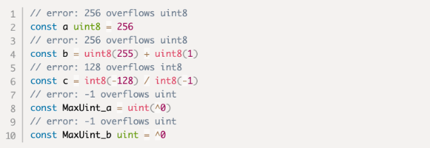 Мы также можем использовать явные преобразования, чтобы предоставить компиляторам Go достаточно информации для вывода типов типизированных именованных констант. Приведенный выше фрагмент кода эквивалентен следующему, в котором X и Y являются типизированными константами AB.