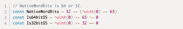Аналогичный метод можно использовать для получения количества битов исходного слова и проверки того, является ли текущая ОС 32-разрядной или 64-разрядной.