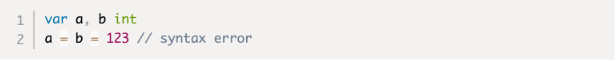 Go не поддерживает цепочку присваивания. Например, следующий код является недопустимым.