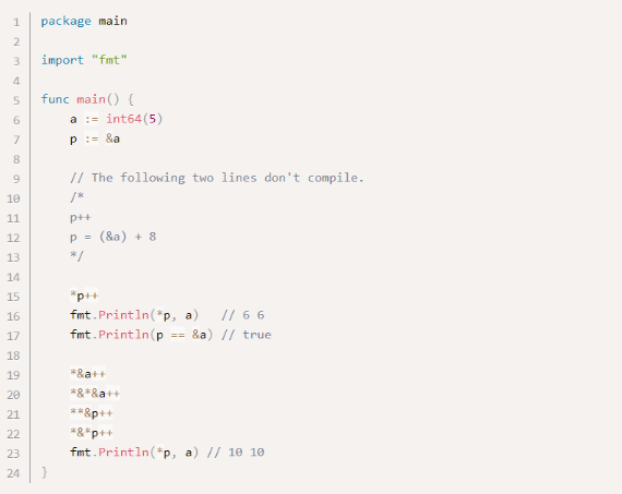 В Go указатели не могут выполнять арифметические операции. Для указателя p и p++ оба p-2 являются незаконными.