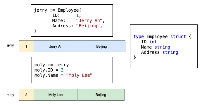 Поля структуры типизированы, каждое поле имеет свой тип.