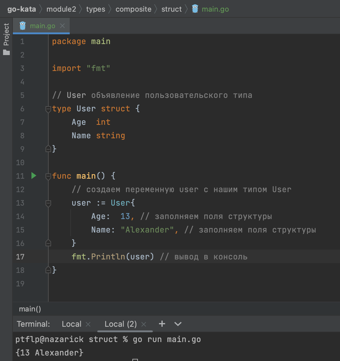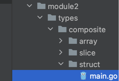 - Для начала создадим файл main.go по следующему пути — module2/types/composite/struct/main.go.