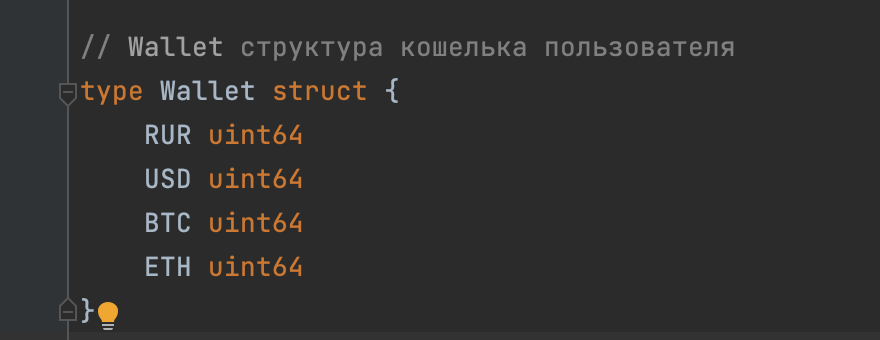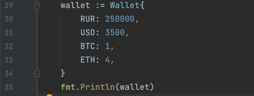 - Для примера, объявим еще один пользовательский тип Wallet (кошелек).
