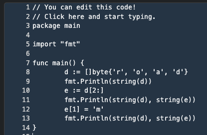 Слайс не копирует данные среза. Он создает новое значение среза, указывающее на исходный массив. Это делает операции срезов такими же эффективными, как манипулирование индексами массива. Следовательно, изменение элементов (а не самого среза) повторного среза изменяет элементы исходного среза.