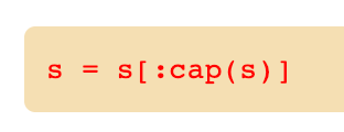 Ранее мы нарезали s на длину короче, чем его емкость. Мы можем увеличить s до его вместимости, снова нарезав его.