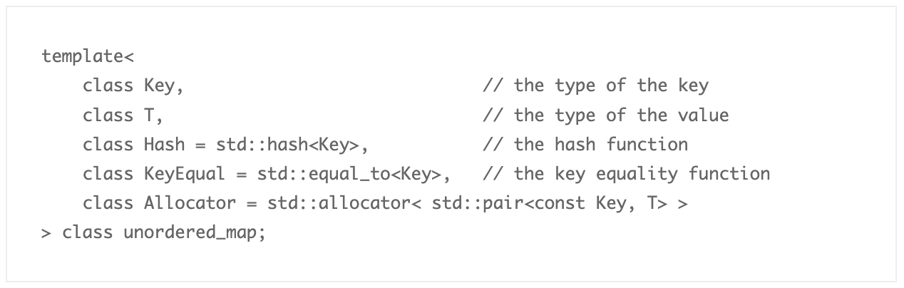 Первый язык, который мы обсудим — это C++. Стандартная библиотека template C++ (STL) предоставляет std::unordered_map то, что обычно реализуется в виде хэш-карты.