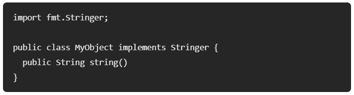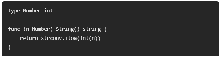 Чтобы структура вызывалась как implements интерфейс fmt.Stringer, ей нужно просто иметь ту же сигнатуру метода, что и интерфейс.