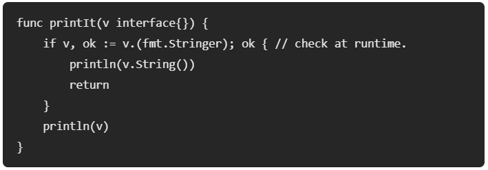 Для проверки преобразования типа во время компиляции и во время выполнения информация будет храниться во внутреннем списке с именем itabTable. Этот список itabTable хранит информацию обо всех преобразованиях типов и утверждениях. Он организован и используется как кеш для ускорения производительности любых будущих преобразований типов и утверждений.