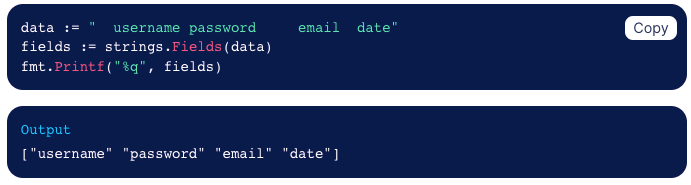 Еще одной полезной функцией, помимо strings.Split, является функция strings.Fields.