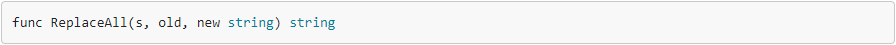 ReplaceAll возвращает копию строки s со всеми непересекающимися экземплярами старого, замененными новыми. Если old пусто, оно совпадает в начале строки и после каждой последовательности UTF-8, что дает до k+1 замен для строки из k-рун.