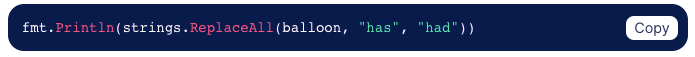 В скобках первым параметром указан balloon, переменная, которая хранит оригинальную строку; далее идет подстрока "has", которую мы хотим заменить, а третьим параметром идет "had" — подстрока, которую мы хотим вставить в оригинальную строку. Наш вывод будет выглядеть следующим образом, когда мы добавим этот код в программу.