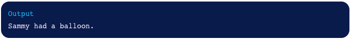 Давай представим, что Sammy потерял свой шарик. Поскольку у Sammy больше нет шарика, мы изменим подстроку "has" (есть) оригинальной строки ballon на "had" (был) в новой строке.