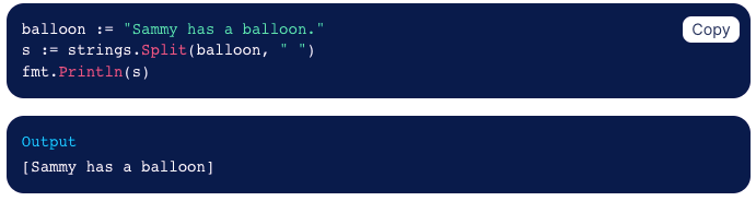 Мы можем как объединять строки, так и разбивать их на несколько отдельных строк. Для этого используем функцию strings.Split и выполняем разделение строки по пробелам.