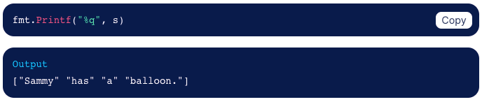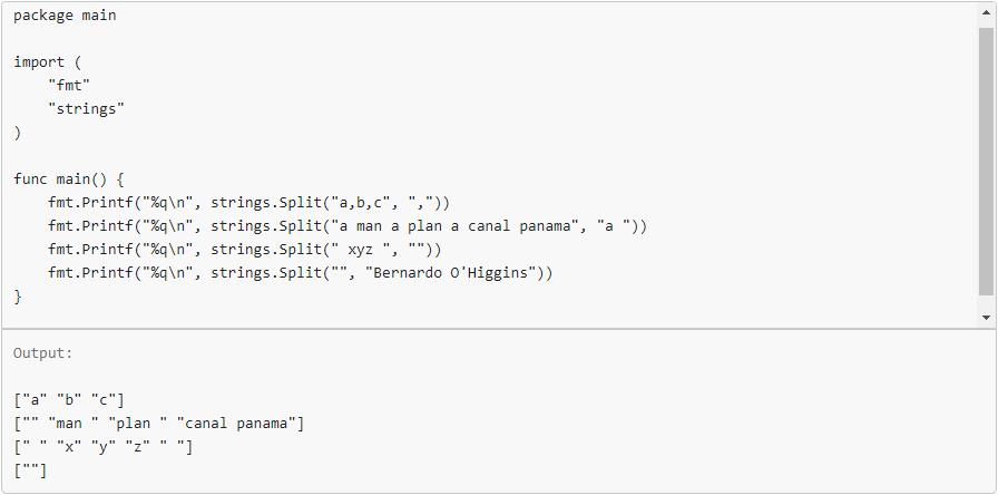 В результате мы получим набор строк. Поскольку мы использовали strings.Println, очень трудно сказать, какой мы получили результат, посмотрев на вывод. Чтобы убедиться, что мы получили набор строк, используем функцию fmt.Printf с оператором %q для вывода строк.
