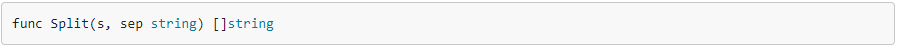 Функция Split разбивает фрагменты s на все подстроки, разделенные sep, и возвращает фрагмент подстрок между этими разделителями.