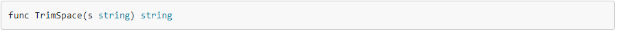 TrimSpace возвращает фрагмент строки s с удаленными начальными и конечными пробелами, как определено в Unicode.