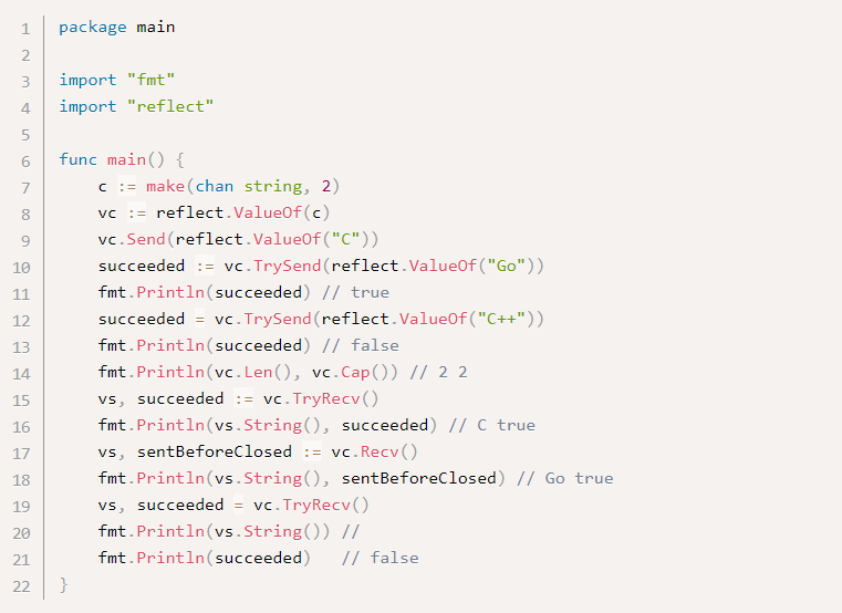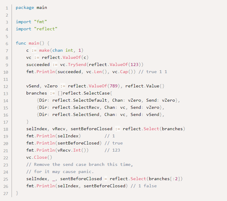 Мы можем использовать эту reflect.Select функцию для имитации select блока кода с динамическим количеством case ветвей во время выполнения.