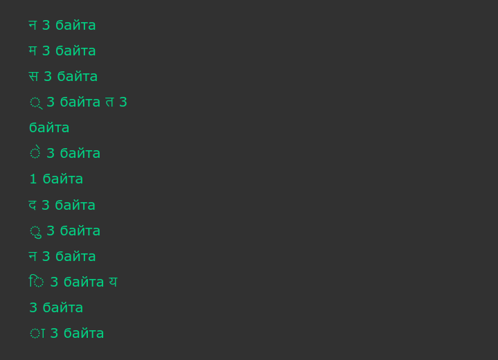 DecodeRune берет первую кодировку UTF8 из переданной строки и возвращает руну закодированного символа и размер, который он принимает в кодировке UTF8.