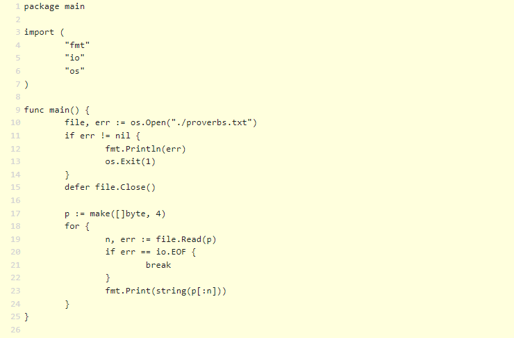 И наоборот — тип io.File можно использовать в качестве reader’a для потоковой передачи содержимого файла из локальной файловой системы. Например, следующий фрагмент исходного кода читает файл и печатает его содержимое.