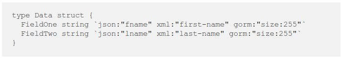 Поле struct может содержать дополнительные метаданные, которые могут использоваться другими программами для обработки этого поля по-другому. Эти метаданные назначаются полю с помощью строкового литерала (необработанная строка [``] или интерпретируемая строка [“”]).