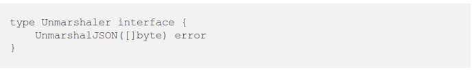 Если поле реализует интерфейс encoding.TextUnmarshaler, а значение поля JSON равно string, Unmarshal вызывает метод UnmarshalText этого значения со строкой без кавычек.