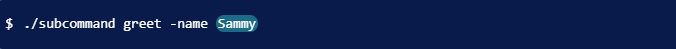Метод Name мы используем в (*GreetCommand).Name() так, что имя субкоманды соответствует имени, которое мы присвоили *flag.FlagSet. NewGreetCommand также определяет флаг -name аналогично предыдущим примерам, но вместо этого вызывает его как метод поля *flag.FlagSet *GreetCommand, gc.fs. Когда функция root вызывает метод Init() команды *GreetCommand, мы передаем указанные аргументы методу Parse поля *flag.FlagSet.
