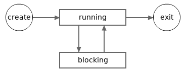 На следующем рисунке показан возможный жизненный цикл горутины.