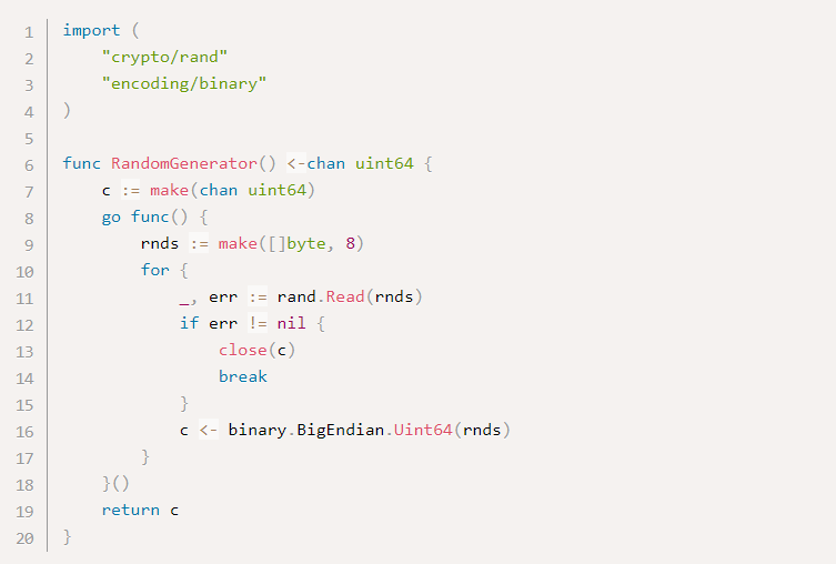 Здесь мы используем генератор случайных чисел в качестве примера. Функция-генератор возвращает один результат, но не принимает параметров.