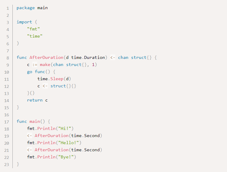 Использование <-time.After(aDuration) часто используется в механизме тайм-аута, который мы рассмотрим в следующих главах.