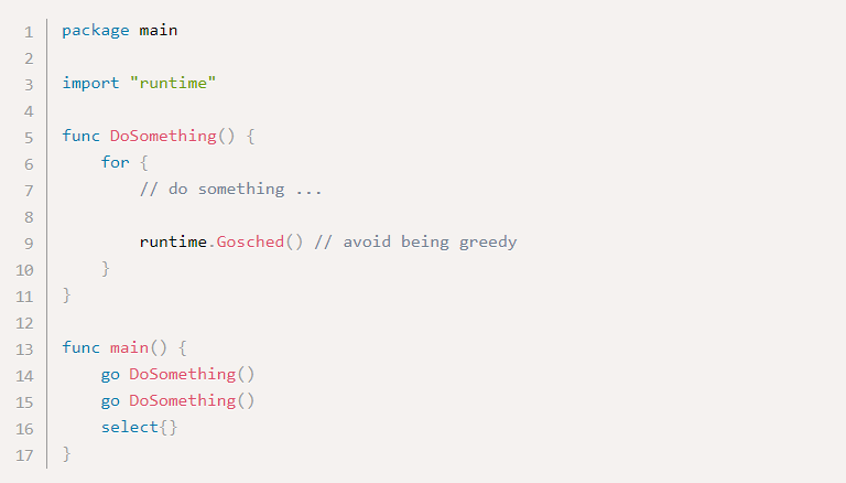 Кстати, есть и другие способы заставить горутину навсегда остаться в заблокированном состоянии. Но select{} — самый простой способ.