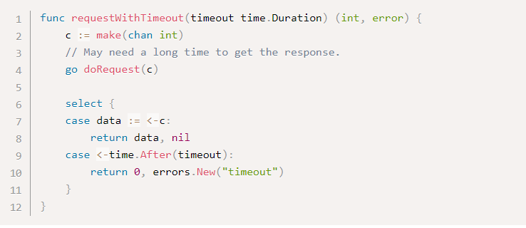 В некоторых сценариях запрос-ответ по разным причинам может потребоваться много времени для ответа на запрос, а в некоторых случаях он никогда не ответит. Тогда мы должны вернуть сообщение об ошибке на сторону клиента, используя решение тайм-аута. Такое решение тайм-аута может быть реализовано с помощью механизма выбора.