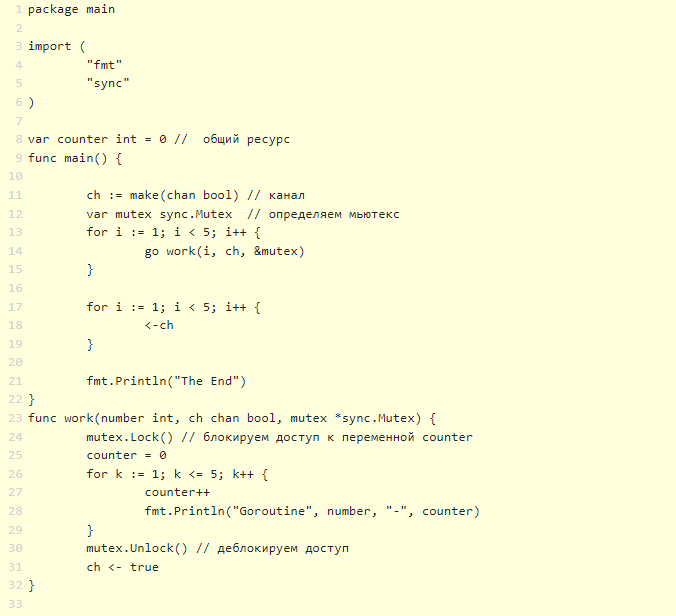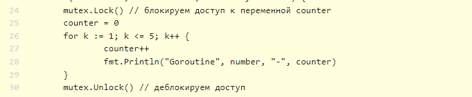 будет иметь доступ только та горутина, которая первая заблокировала мьютекс. В итоге мы получим следующий результат.