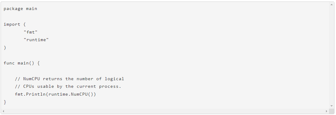 Когда мы запускаем эту программу на своем локальном компьютере, результатом вызова функции NumCPU() будет значение 8. Любая программа Go, которую запустим на данной модели Macbook, получит 8 P.