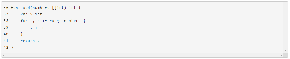 В листинге №1 выше в строке 36 объявлена названная функция add, которая принимает набор целых чисел и возвращает сумму набора. Он начинается в строке 37 с объявления v переменной, содержащей сумму. Затем в строке 38 функция линейно обходит коллекцию, и каждое число добавляется к текущей сумме в строке 39. Наконец, в строке 41 функция возвращает окончательную сумму вызывающей стороне.