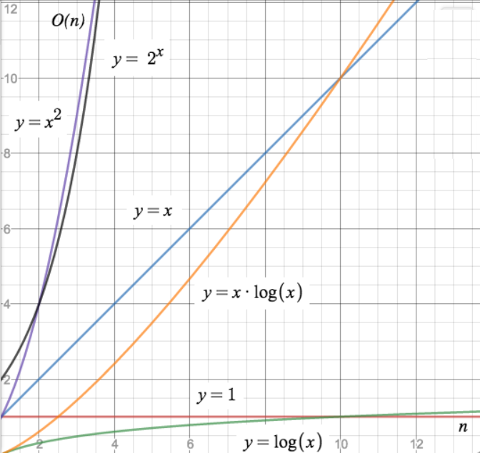 Различные характеристики этих классов временной сложности становятся очевидными, когда мы помещаем все эти функции на один рисунок: