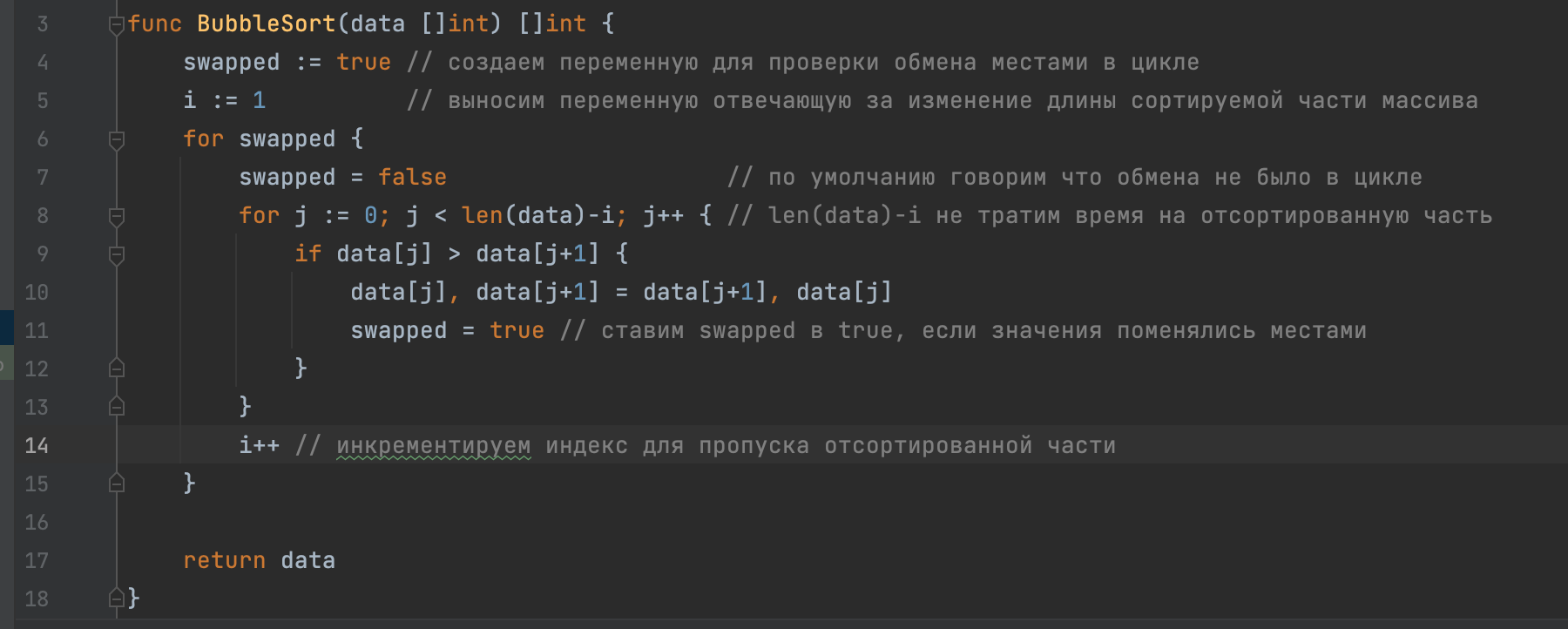 Реализация BubbleSort на Go: кейсы с отсортированным слайсом